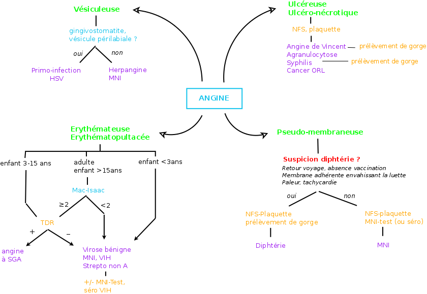- Formes chroniques : cette section comprend des causes non-infectieuses qui ne sont pas des angines à proprement parler 0