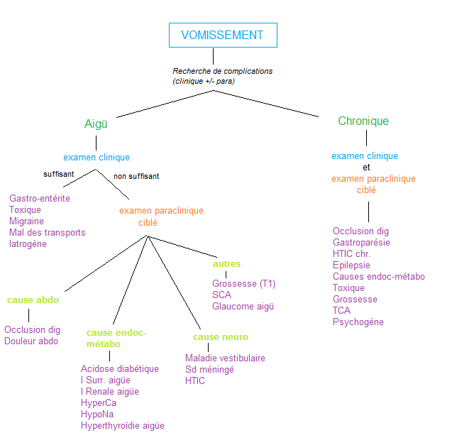 Les vomissements chronique ou sur terrain fragile sont à risque de complications, à rechercher à l’examen clinique et au besoin par des examens complémentaires (non systématique)